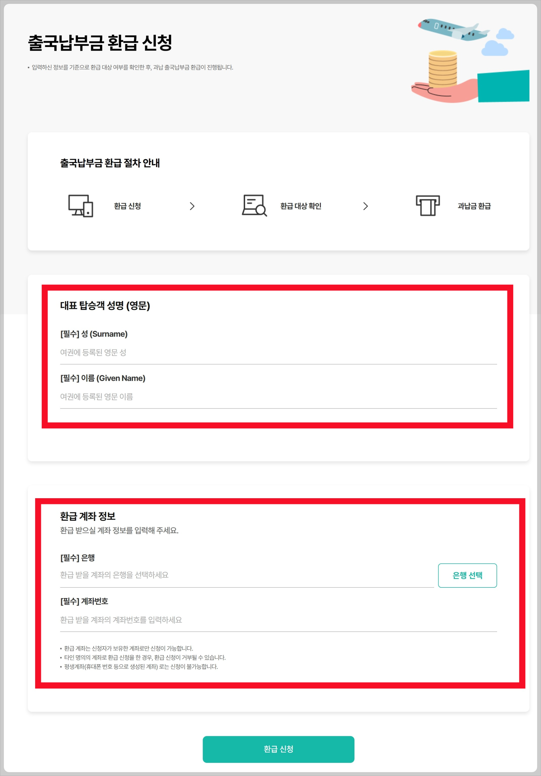 4. 출국납부금 환급 신청을 위한 개인정보 작성